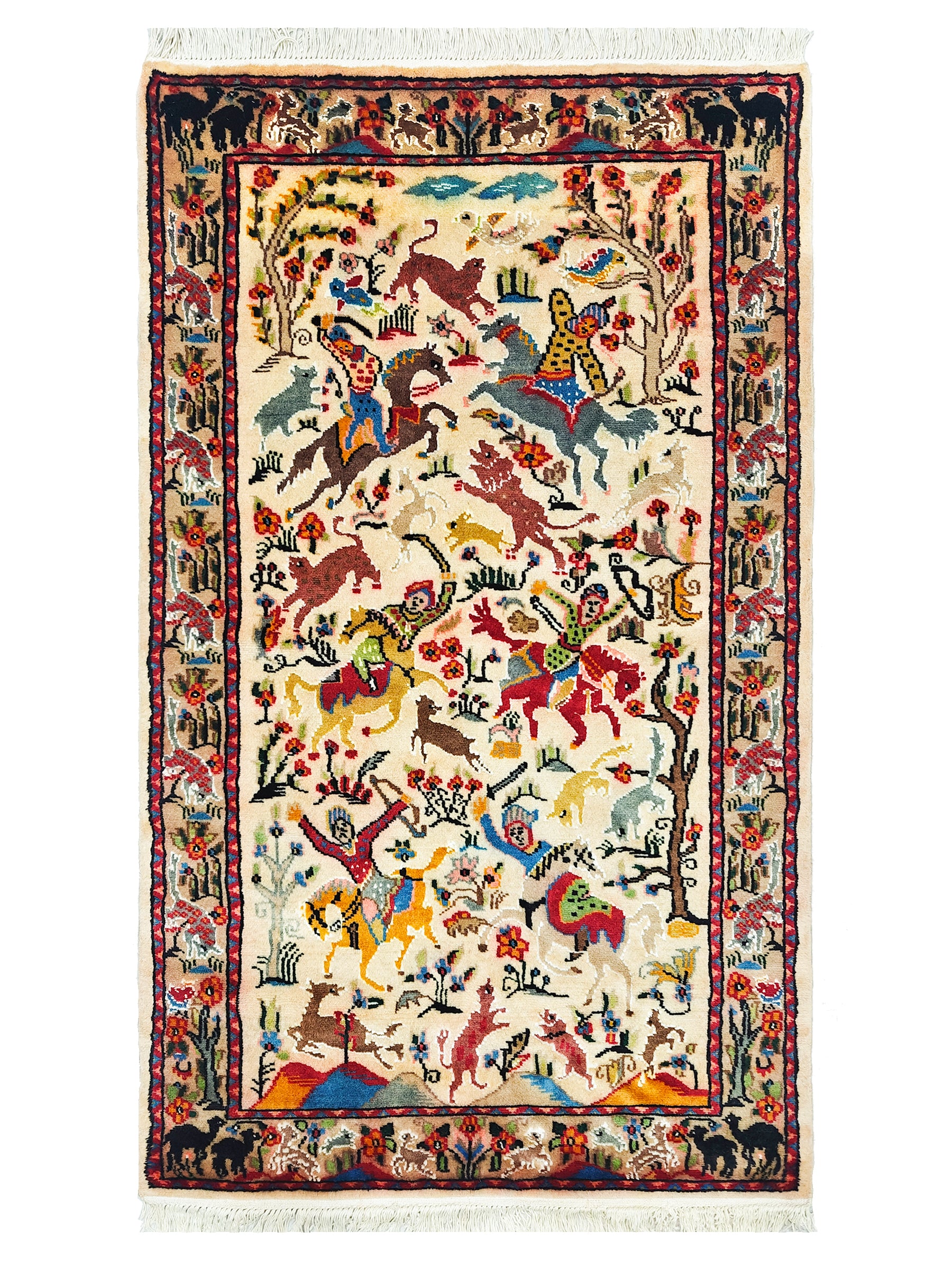 Immerse your home in the rich heritage of Persian rug-making with our Hand-Knotted Pictorial Shikarga Rug a true symbol of timeless artistry and craftsmanship.